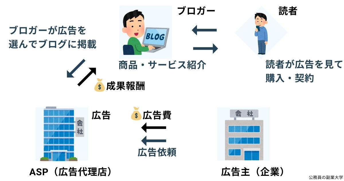 ブログは簡単に説明すると、「広告主(企業)の商品やサービスを自分のサイトで紹介するビジネス」です。